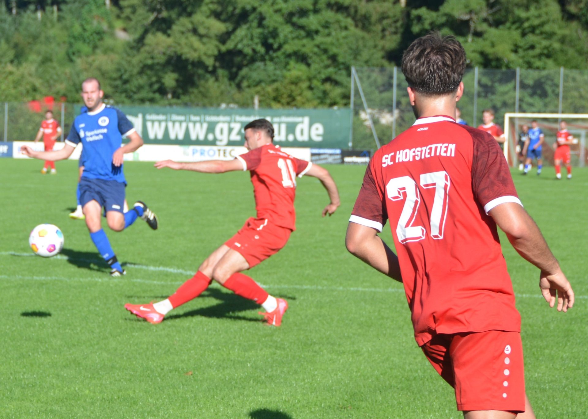 Über 100 Zuschauer waren im Hofstetter Waldsee-Stadion begeistert von ihrem Team. Von Anfang an gab es für die Mannschaft von Miguel Henriques nur eine Richtung – die auf das Tor des FC Wolfach mit Keeper Marwan Gad. Schon in der 9. Minute musste er hinter sich greifen, ein wuchtiger Kopfball von Markus Obert nach Flanke von rechts schlug zum 1:0 ein. Von der Gästemannschaft, die nach eigenen Aussagen endlich mal wieder vorne mitspielen will, kam einfach zu wenig. Der Sportclub kombinierte sich gekonnt durch das Mittelfeld und ließ die FC-Defensive mehrfach alt aussehen. So kam Silas Müller schon nach 15 Minuten nach einer schönen Kombination ungedeckt zum Schuss aus 12 Metern, unhaltbar für Keeper Gad. Nach dem gleichen Muster hätte Jannic Schulz in der 30. Minute auf 3:0 erhöhen können, schoss aber knapp vorbei. Zehn Minuten später traf er dann, als er sich gegen zwei Wolfacher auf der linken Seite behauptet hatte.